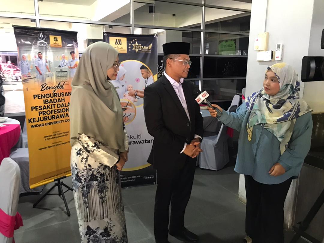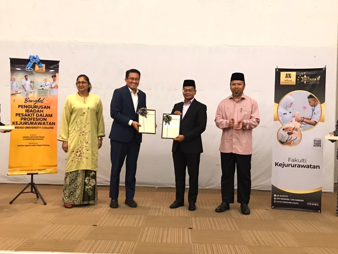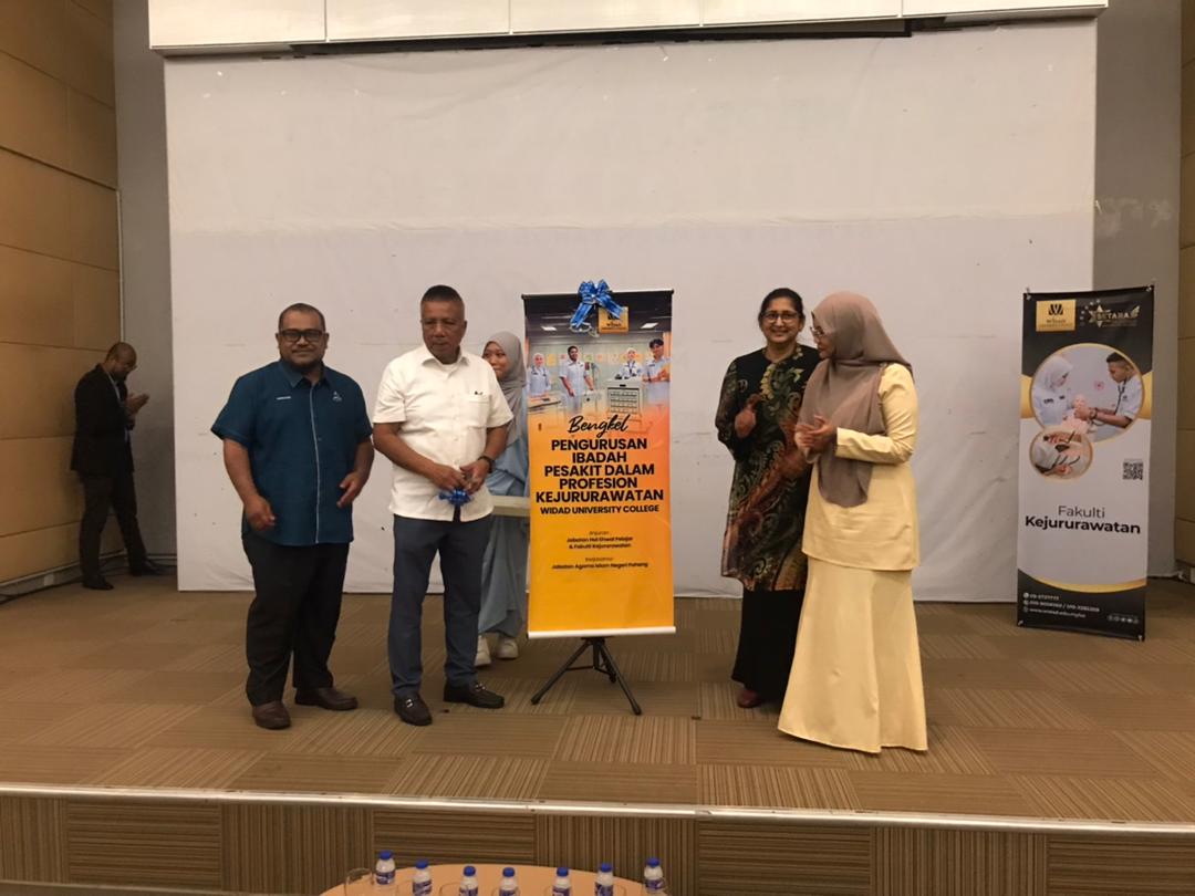 The program is organized by the Student Affairs Department (HEP) and the Faculty of Nursing in collaboration with the Pahang State Islamic Religious Department. The Opening Ceremony was held on Monday, 4 August 2025 from 9.00 am to 11.00 am at the Auditorium, Widad University College. The program was officiated by YH. Dato’ Dr. Hj. Nasir bin Mat Dam, Vice Chancellor of Widad University College and was also attended by WUC staff and students. The Patient Worship Management Workshop in the Nursing Profession is an educational program that combines nursing knowledge with the values of worship, aiming to produce nurses who are more empathetic in providing holistic care to patients. This workshop provides new knowledge, reflection, and experience on how to effectively manage patient worship, which allows nurses to combine these two aspects in their daily practice. The workshop closing ceremony was officiated by YH Dato’ Haji Ahmad Khirrizal Bin Haji Ab. Rahman, DSAP., DIMP., SAP., AAP., Director of the Pahang Islamic Religious Department (JAIP).